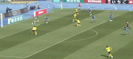 第60分鐘,真瀨拓海助攻,多田圭佑低射破門,水戶蜀葵1-0柏太陽神