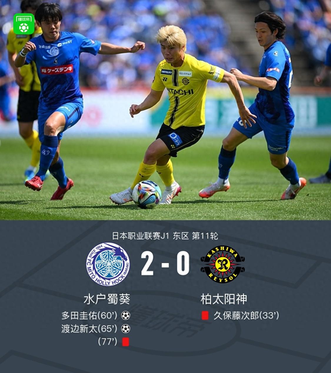 北京時間4月19日日本職業聯賽J1 東區 第11輪,水戶蜀葵主場對陣柏太陽神。水戶蜀葵多田圭佑破門,渡邊新太破門。最終比分水戶蜀葵 2-0 柏太陽神。