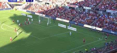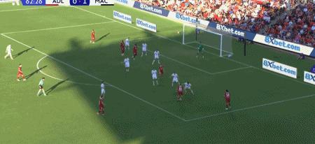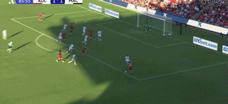 第63分鐘,巴尼特傳中,安塞爾莫頭球破門扳平比分,阿德萊德聯1-1