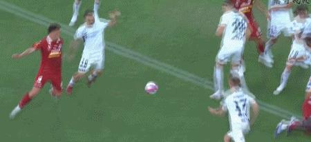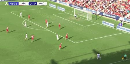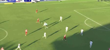 第75分鐘,基基阿尼斯倒地掃射破門將比分反超,阿德萊德聯2-1麥克阿瑟