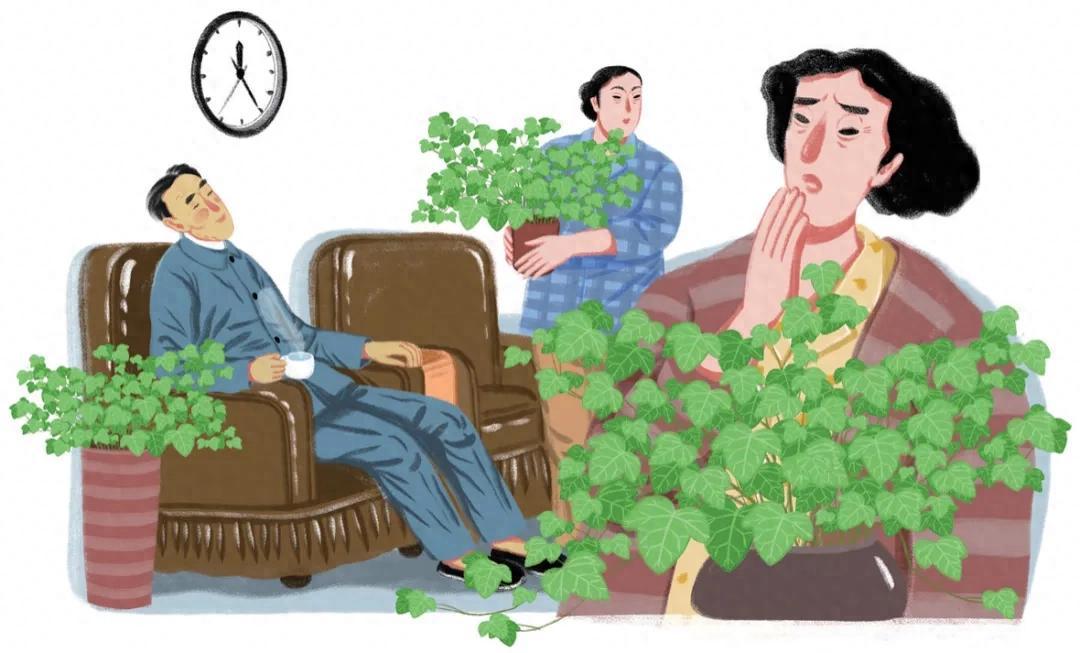這天晚上,大蘭和阿樹視頻聊天時,發現臥室裏多了一盆常春藤,就問是從哪裏來的。阿樹說,是保姆建議買的,還買了不少呢。他拿着手機,在屋子裏轉了一圈,果然,到處都是常春藤。大蘭埋怨道:“買那麼多常春藤幹嗎?浪費錢!你以前不是不喜歡花花草草的嗎?”