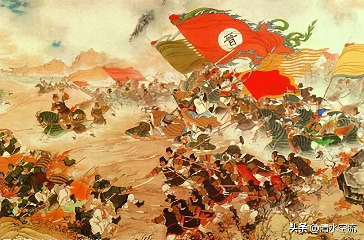 最後全軍崩潰,苻堅也在混亂中被命中一箭,奪路而逃,二十多萬大軍全線潰敗。史載:“(苻)堅衆奔潰,自相蹈藉投水死者不可勝計,淝水爲之不流。餘衆棄甲宵遁。聞風聲鶴唳,皆以爲王師(指晉軍)已至,草行露宿,重以飢凍,死者十七八。”原本的南征大軍,一場混亂與踩踏過後,所剩寥寥無幾。