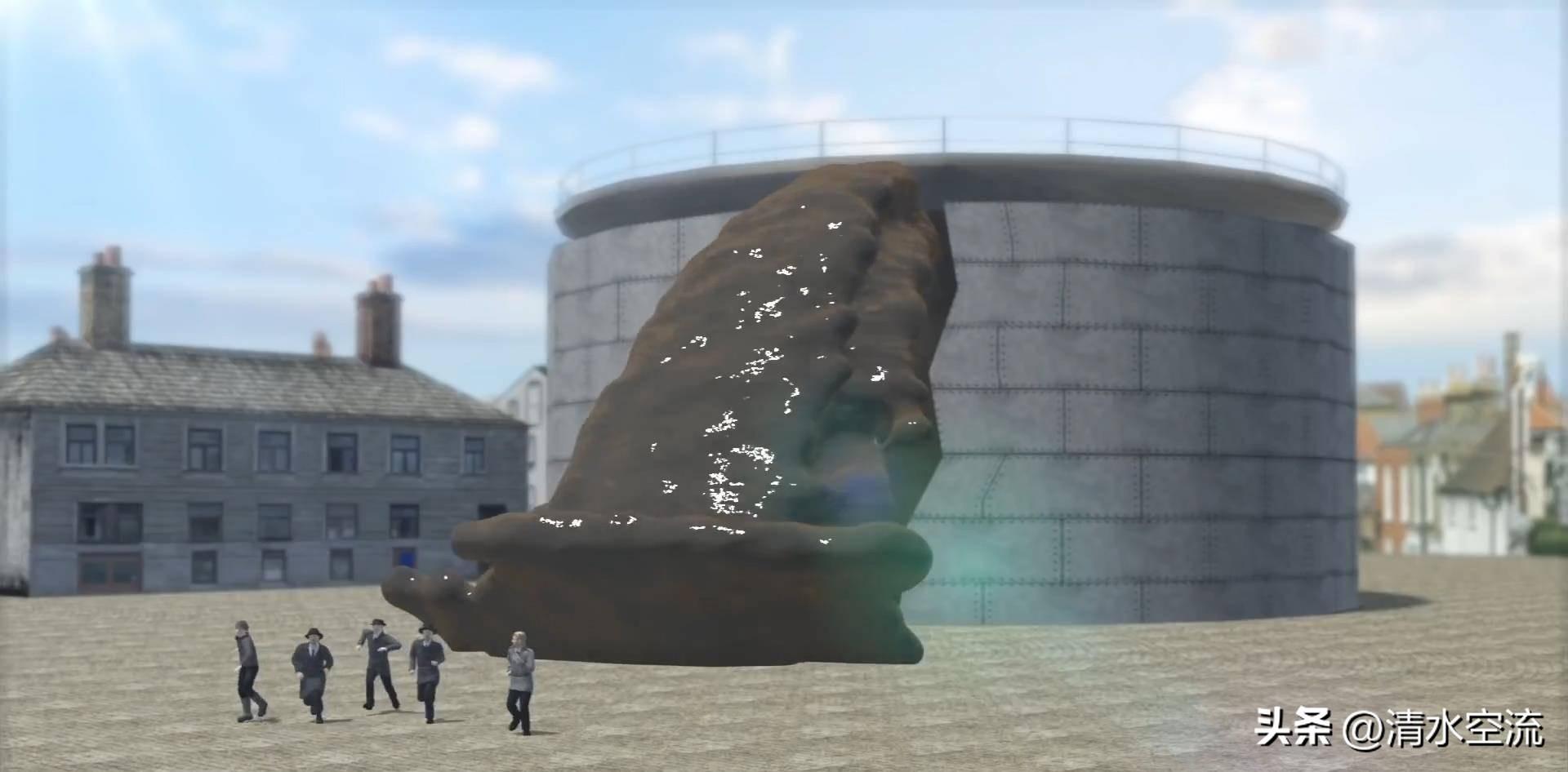 當地人誰也不會想到這一天會是波士頓最令人悲傷的一天,當時波士頓港被一陣轟然巨響撕碎。還沒等人們想明白髮生了什麼,波浪就已經洶湧地奔向大小街道。緊接着,讓人駭人的景象出現了,碼頭之上,近8米高的黑色巨浪驟然湧起,幾乎遮蔽了天空。粘稠的液體從巨型鋼製儲罐中狂湧而出,裹挾着碎裂的鋼板,向着街道、房屋與毫無防備的人羣席捲而去。