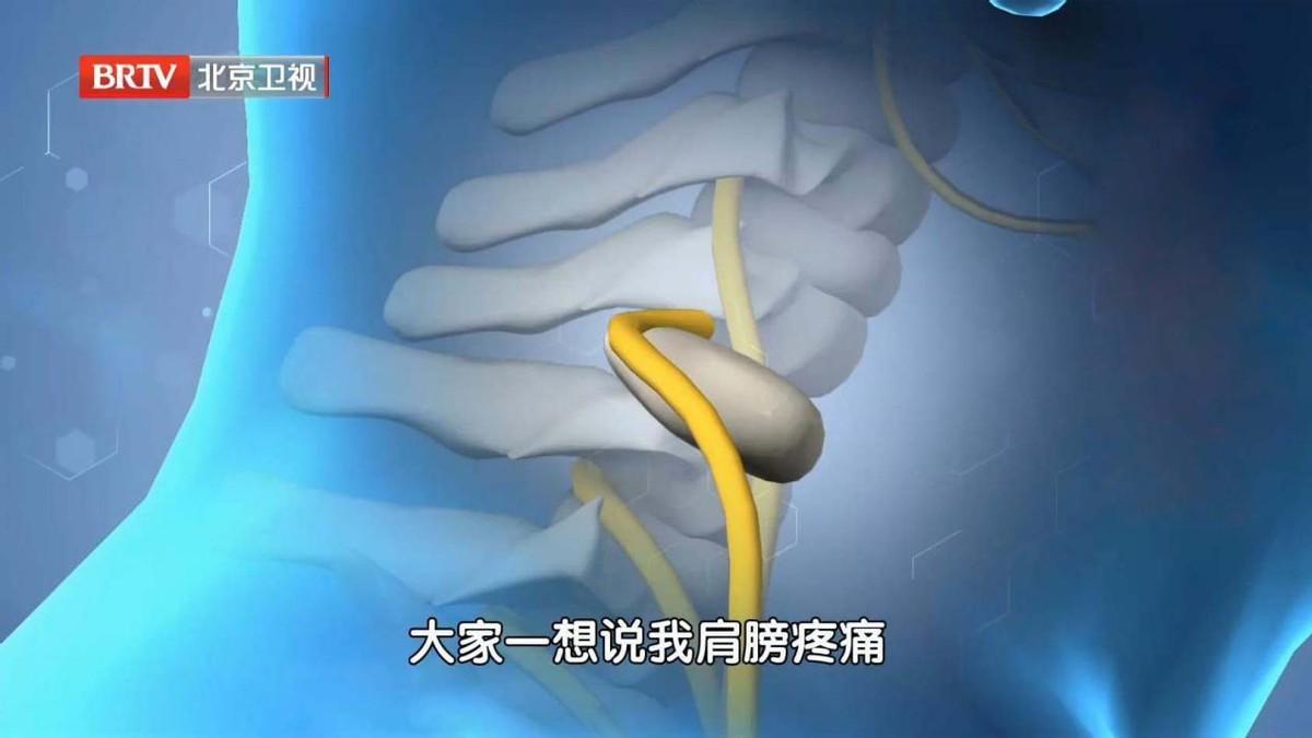 它是由於椎間盤突出、骨刺等原因,壓迫到了分佈在肩部的神經根,產生了“肩痛”,是肩痛中發病率較低的。