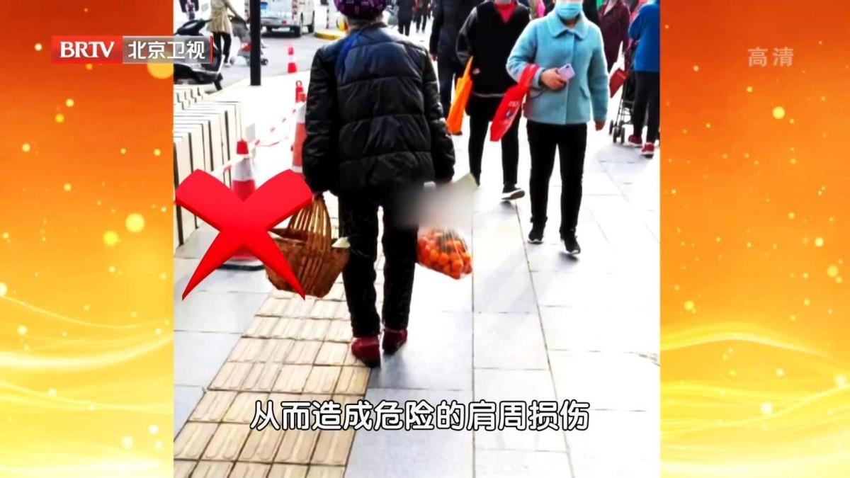 籃子和布袋不建議叔叔阿姨日常使用,因爲會造成肩膀一側的肌肉過於緊繃,牽引肩袖,從而造成肩周損傷。