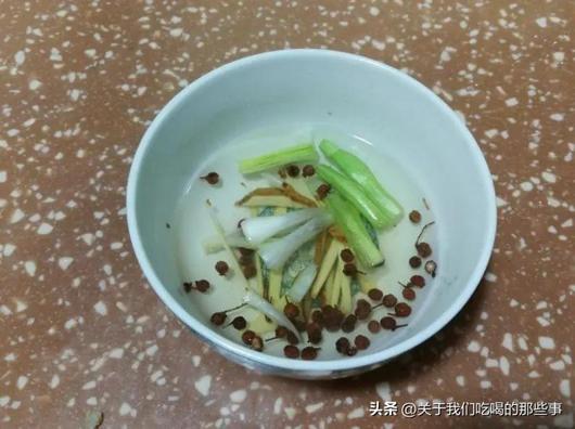 2、想要肉圓子鮮嫩多汁,一定要加蔥姜水。大蔥切段,生薑切片,放入鍋中加入一把花椒,倒入一碗清水,大火煮開後小火煮5分鐘,關火晾涼,撈出殘渣,留蔥姜水備用。蔥姜水可以去腥增香,還能增加肉餡的水分,喫起來更鮮嫩。