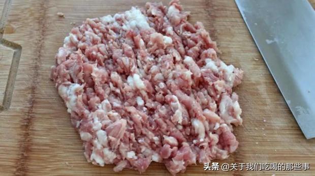 1、豬肉選肥瘦相間的五花肉,喫起來更香更嫩,如果用純瘦肉的話喫起來就比較幹。五花肉洗乾淨,去掉豬皮,切成小塊,放進絞肉機裏絞成肉泥,沒有絞肉機就直接用刀剁成餡兒。