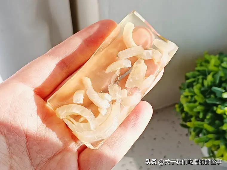在過去,經濟條件不好,過年沒啥像樣的下酒菜,母親就去村裏的屠戶那兒買幾斤豬皮,煮成豬皮凍,做好後晶瑩剔透,喫起來軟糯爽滑,是非常不錯的下酒菜,就連不喝酒的孩子也搶着喫,真的是很好喫。