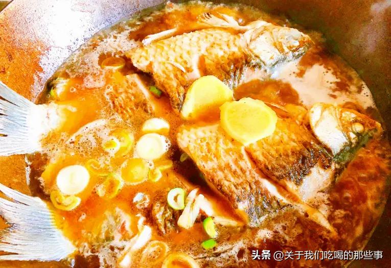 7、放入煎好的草魚,開大火燉。用勺子把湯汁澆在魚身上,這樣熟得更快,也方便入味。燉10分鐘後,給草魚翻個面,繼續用勺子澆湯汁,再燉10分鐘,等到魚肉燉熟。