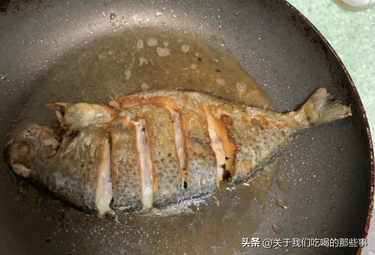 5、煎魚要用小火,火太大的話就容易煎糊,導致粘鍋。小火煎一會兒,等到底部焦黃後輕輕晃動鍋子,魚就會在鍋裏滑動,說明沒有粘鍋,用鏟子輕輕翻個面,繼續煎一會兒。