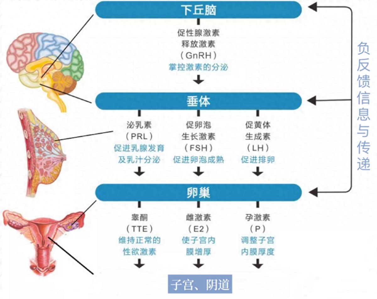 男女雙方都有性腺軸, 女性的性腺軸由女性的下丘腦-垂體-卵巢-子宮-陰道構成, 它就如同女性體內的核電站一樣維持機體雌激素孕激素的正常分泌。女性健康的身體、細膩的肌膚、美麗的容顏、和旺盛的性能力都是由這個性腺軸所決定的