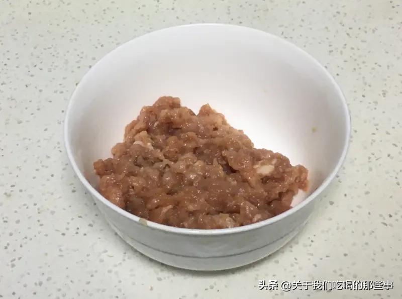 1、準備一小塊五花肉,洗乾淨後切成肉末,放入碗中加入食鹽、料酒、生抽、蠔油,用筷子攪拌均勻,醃製20分鐘。蒜瓣去皮切末,生薑切末,香蔥剝洗乾淨後切蔥花。