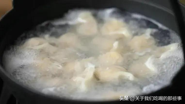 9、煮餃子要先煮皮兒,後煮餡兒。煮皮兒時不要蓋蓋子,鍋裏煮開後,打開蓋子加入一碗冷水。煮餃子有一個重要的技巧,就是“點水”。點水可以降低鍋裏的溫度,這樣餃子能夠完全煮熟,還不會煮破,口感更加爽滑筋道。麪點師傅說,點水和不點水差別很大,不點水的話水溫很高,餃子就容易破皮和煮爛。