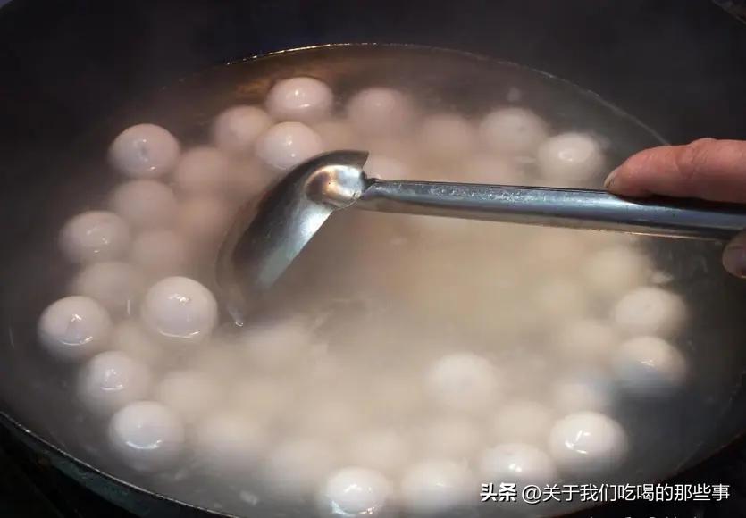 湯圓是實心的,下鍋後會沉底。鍋底的溫度比較高,要用鏟子推動,這樣可以防止湯圓粘鍋、粘連,也能讓湯圓受熱均勻,煮好後光滑圓潤,不破皮不變形。