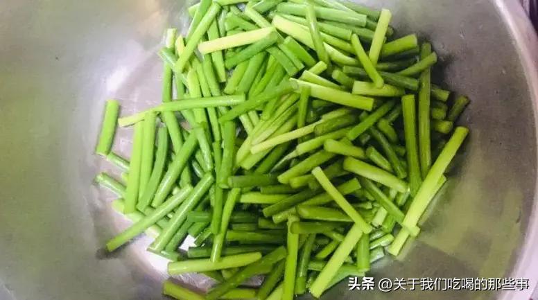 1、蒜薹和臘肉是絕配,蒜薹吸收了臘肉的油脂和香味,比臘肉還要好喫呢。春季也是新鮮蒜薹上市的時候,特別鮮嫩,大家一定要嚐嚐。蒜薹去掉頭尾的部分,洗乾淨後切成長段,放入碗中備用。