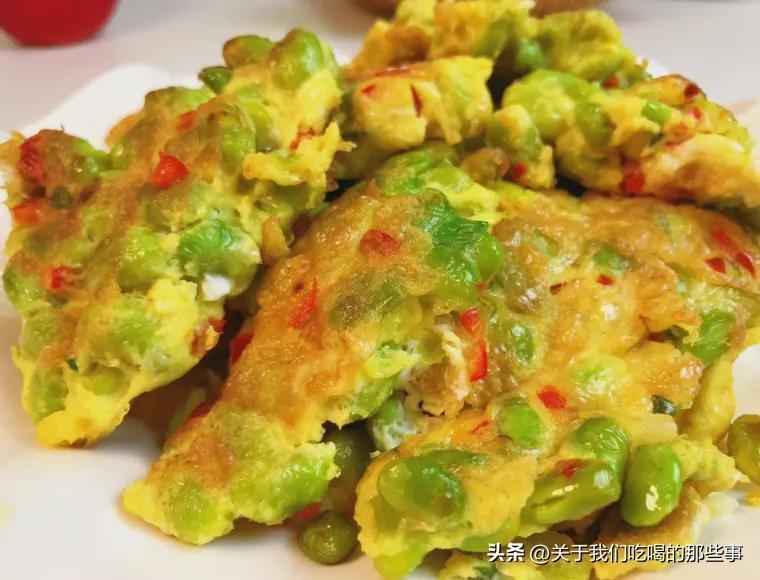 2、鍋裏倒油燒熱,倒入毛豆,加入適量鹽,大火翻炒一會兒,炒至毛豆表皮變焦黃起皺。倒入雞蛋液,大火煎一會兒,等到蛋液凝固後翻個面,兩面都煎至金黃,炒成大塊後即可出鍋。