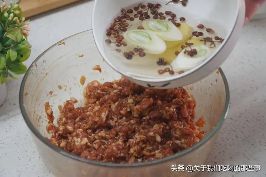 蔥、姜、花椒的香味都泡進了水裏,可以去腥增香,提高肉餡的含水量,這樣汁水就會很多,喫起來又香又嫩又多汁。
