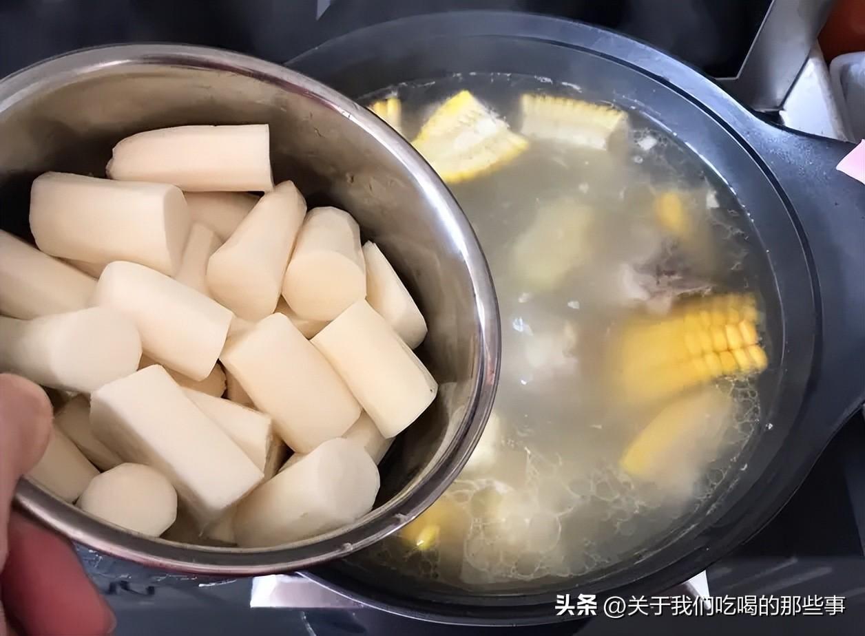 (記得蔥要去掉,不然蔥爛在鍋內,不怎麼美觀,等出鍋時再加點蔥花就行。還有需要加蔬菜的話,不要加太早,避免燉爛了。除了可以加山藥玉米外,還可以加蓮藕、胡蘿蔔、土豆、木耳、海帶、冬瓜、白蘿蔔等。)