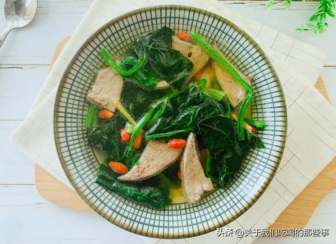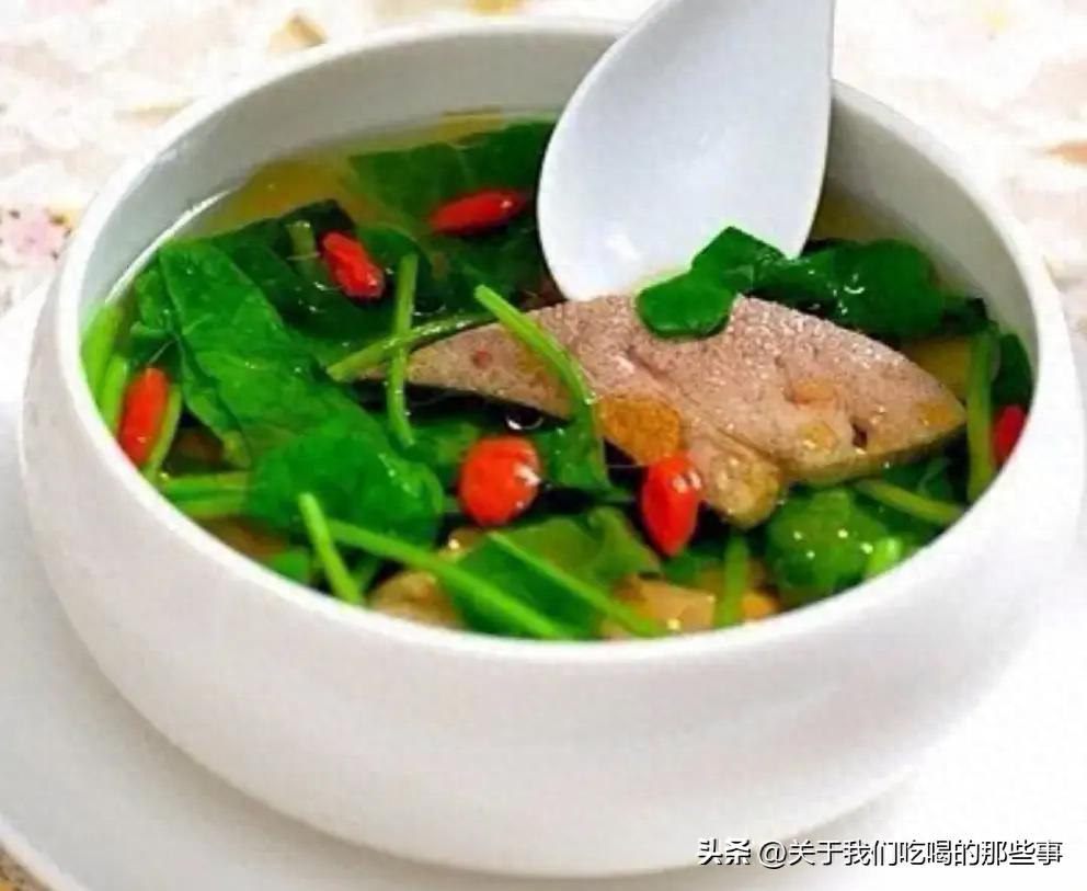 4、將豬肝放進鍋內,煮一分鐘,再放入菠菜、枸杞,繼續煮一分鐘。最後加鹽調味,就可以關火了。老少皆宜的一道美味,記得經常做呀。
