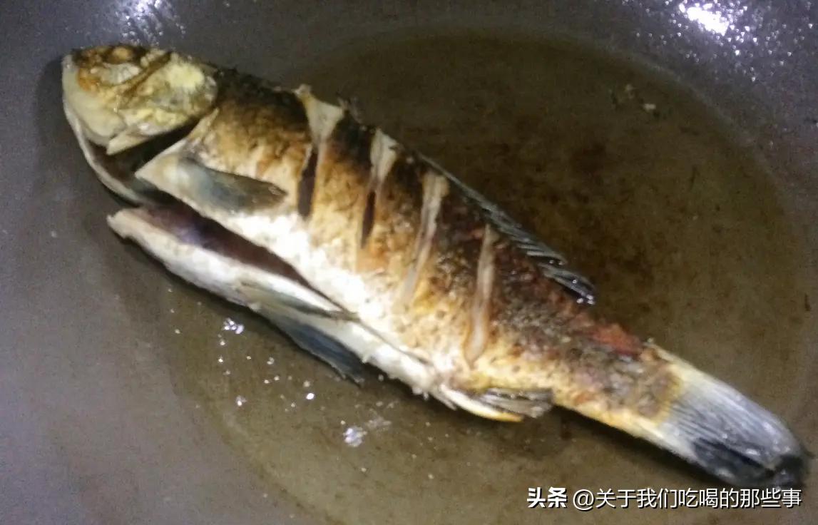 4、接着翻到另一面,繼續保持小火,煎到金黃色。煎好後,將魚盛出,就可以繼續後面的步驟了,不管是燉魚湯,還是紅燒,都很不錯。