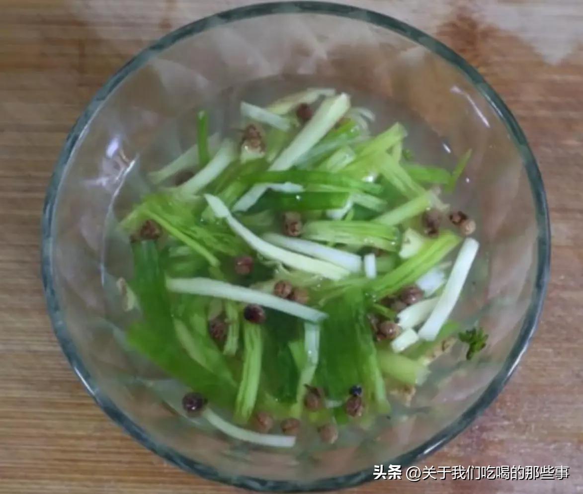 1、一小塊生薑,去皮洗淨,一部分切成細絲,一部分切成薑片、一部分剁成薑末。蔥洗淨,切成細絲。花椒粒沖洗一下。處理好後,將薑絲、蔥絲、花椒粒放進碗中,再加入開水,浸泡出香味,放涼用。