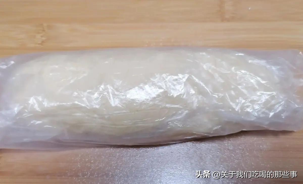 揣面時有些粘手是正常的,揣成麪糰後,蓋上保鮮膜或者鍋蓋,靜置十五分鐘。