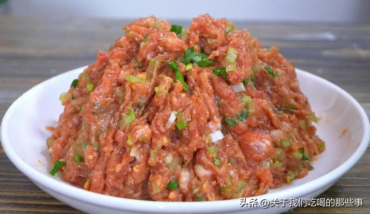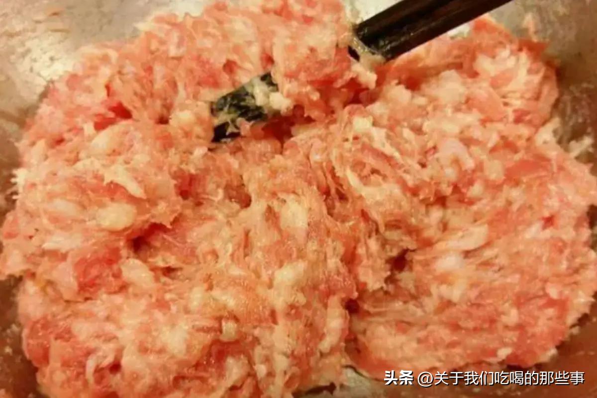 調肉餡,記得“鹽水油”三字口訣,就是先加鹽,然後加水,最後加油,按照這個順序做,肉餡特別鮮嫩,喫起來流油又流汁。