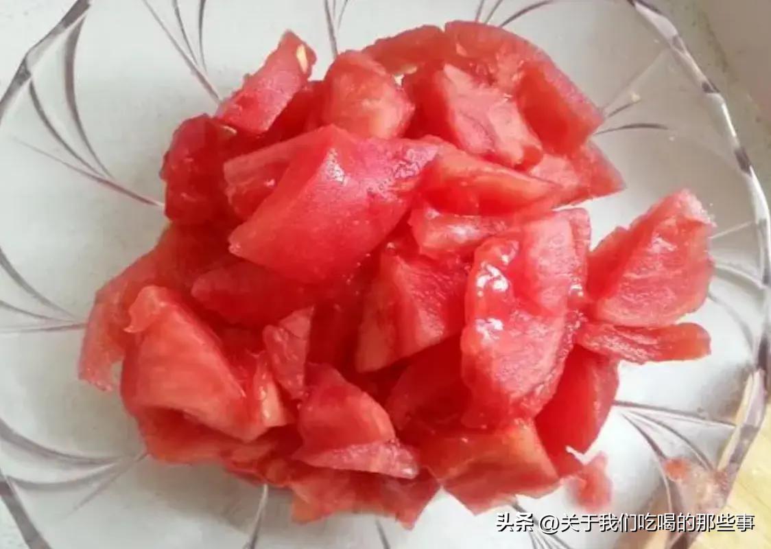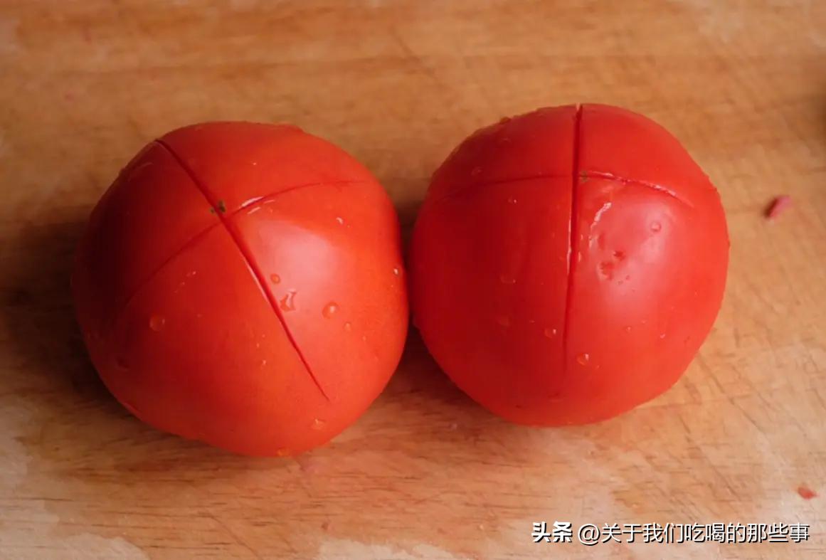 第一:想要湯汁多,西紅柿切塊前需去皮。熱水一燙很容易將外皮去掉,別覺得麻煩。