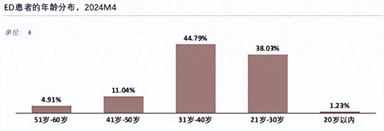 《2024年中國抗ED藥物行業白皮書》裏顯示,勃起功能障礙(簡稱ED)患者的年齡正趨向年輕化。過去人們普遍以爲 ED發病的主力軍應是中老年男性羣體。但現在患病年齡正逐步降低了。在21歲-30歲該年齡段,ED的發病率竟高達38.03%,且仍有上升的趨勢,形勢不容樂觀。