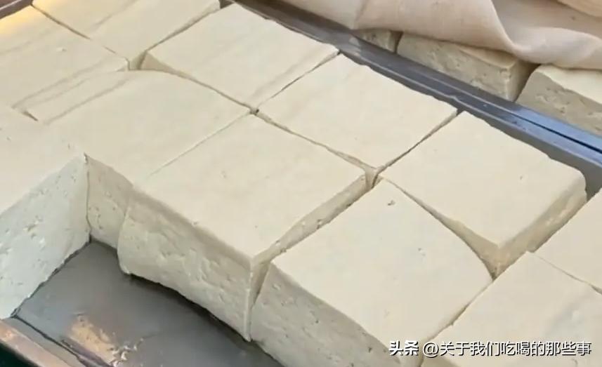 目前市場上做豆腐,有的用的是箱型模具,有的直接用多層板子,成型效果沒有模具好。不管是哪種,重物都是壓在中間,所以中間會壓得更緊實,水分比較少,口感更老。