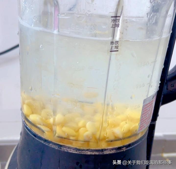 - 做豆腐,打豆漿是關鍵,黃豆和水的比例是1:6,口感更濃郁,豆腐腦也容易成型。幹黃豆泡發12小時以上,洗一下後倒入破壁機裏,加入清水打豆漿。