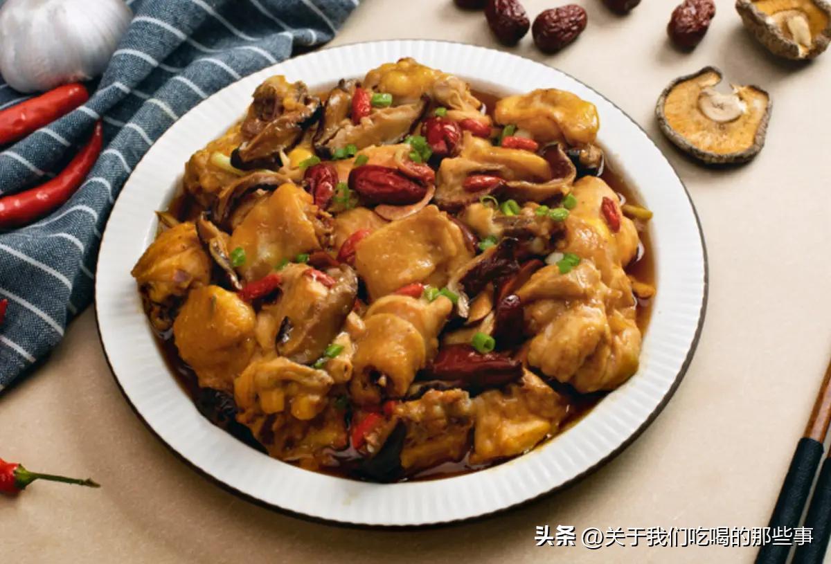 準備雞、香菇、木耳、紅棗、枸杞、生抽、蠔油、老抽、白胡椒粉、食鹽、澱粉、料酒、花椒粉、食用油
