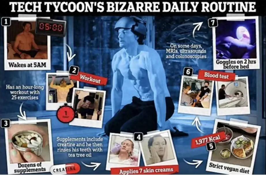 在最近的一篇 X 帖子中,49 歲的布萊恩·約翰遜分享了他的 “丁丁年輕化方案”。這位執着於“不老夢”的億萬富翁,曾讓18歲的兒子和自己交換血液,妄想能借此變年輕。失敗後,他又希望能夠通過“電烤”的方式,先讓自己的下半部分先回到18歲。