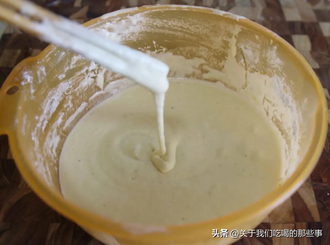 所以掌握好麪糊調好的狀態很重要!建議調麪糊時分次加水或者啤酒,調成稠酸奶的狀態,挑起時麪糊呈流線型。