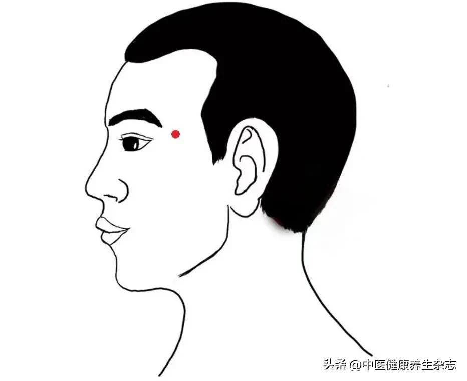 太陽穴位於頭部,眉梢與目外眥之間,向後約一橫指的凹陷中,屬經外奇穴。在中醫理論中,太陽穴具有通經活絡、益氣明目的功效,可用於調理頭痛、頭暈及視疲勞,是眼疾的常用穴之一 。
