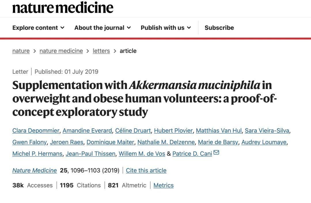 國際頂刊《Nature》雜誌公佈細節:32位超重志願者,在保持正常飲食、不特意運動的前提下,連續12周攝入AKK菌,最終結果顯示平均體重下降4.54斤,腰圍、臀圍分別減少1.56cm和2.63cm。