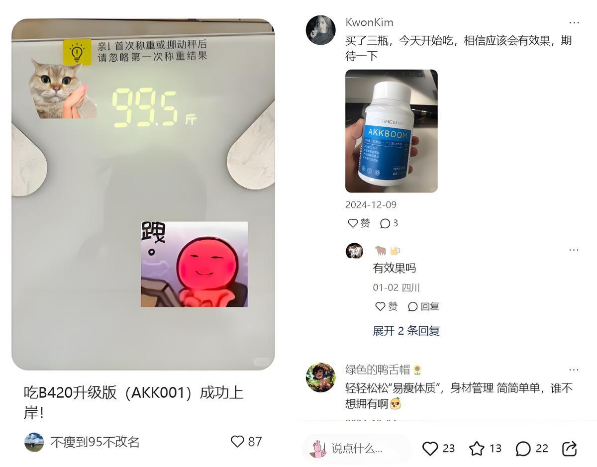 躲在房間裏搜了半天減重教程後,林宇在微博、小紅書的大量素人分享帖中,種草了一種“不用節食,無需額外運動”的黑科技AKK001。“實驗說3個月平均能減16%脂肪,輕鬆‘躺’出馬甲線,太誘人了。”林宇有些心動,趁京東平臺活動迅速跟風。