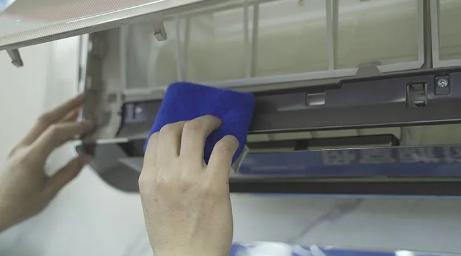 用半乾的抹布擦拭空調內部面板。