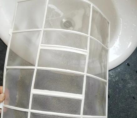 我們拿出了一個室內衛生條件還不錯的家中使用了1年的空調濾網,上面佈滿了灰塵和棉絮狀的物質,讓人感覺特別髒,很不舒服。