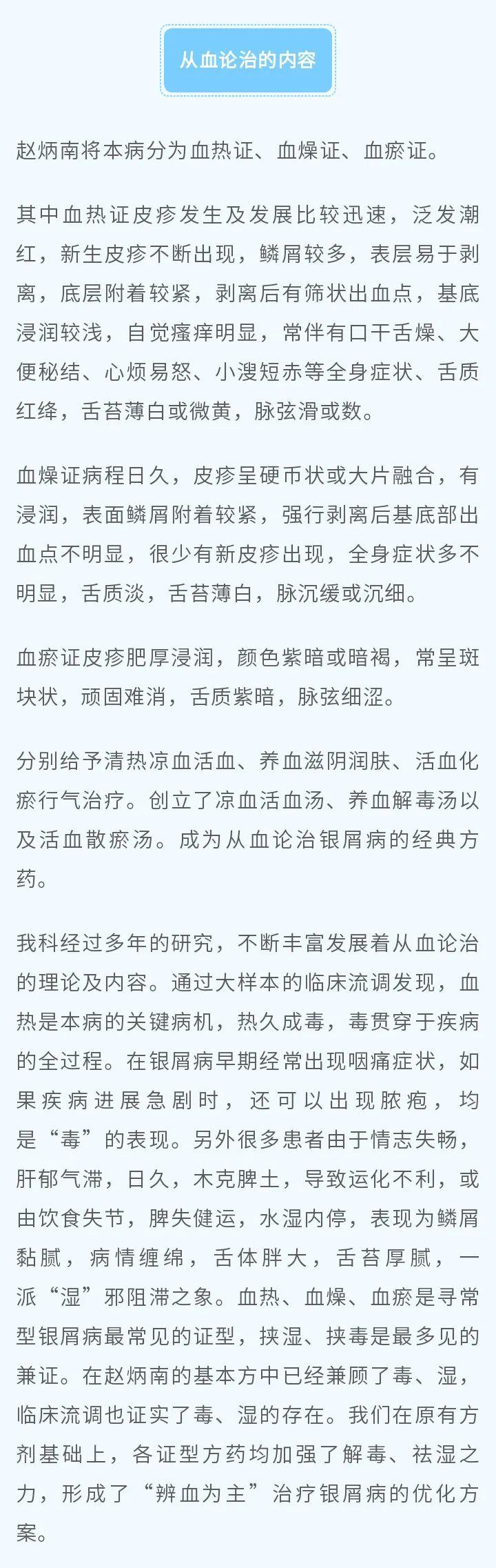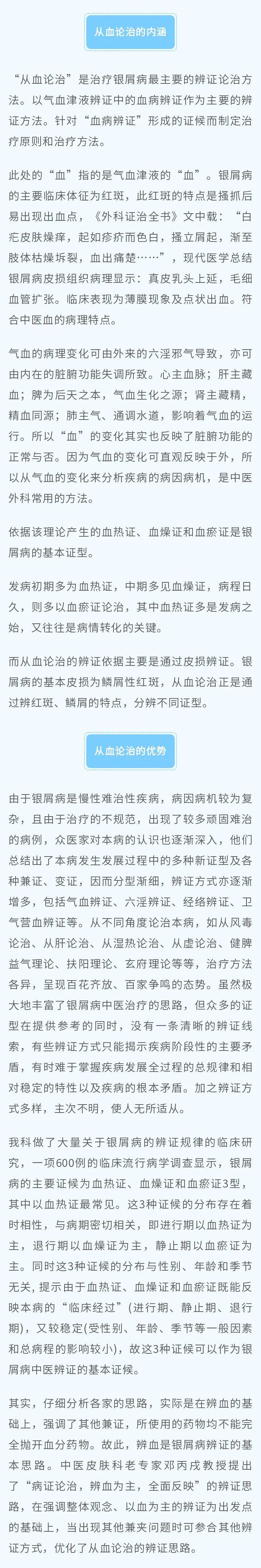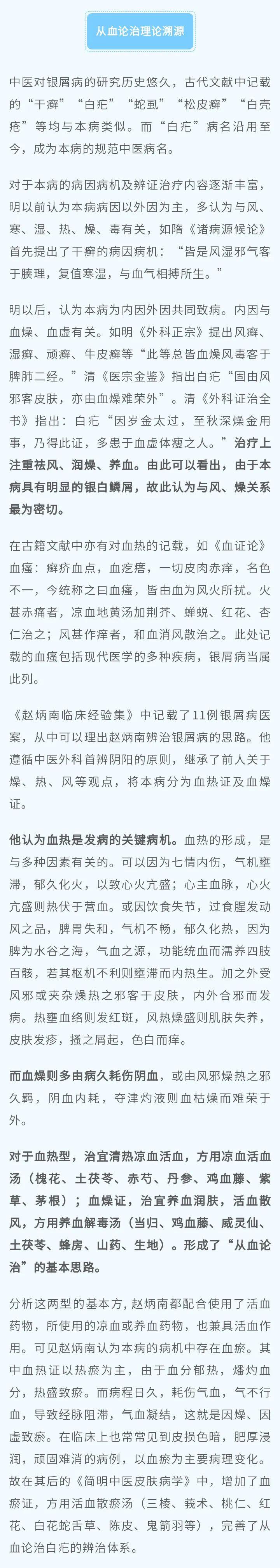2、對於血熱型,治宜清熱涼血活血,方用涼血活血湯;血燥證,治宜養血潤膚,活血散風,方用養血解毒湯。形成了“從血論治”的基本思路。