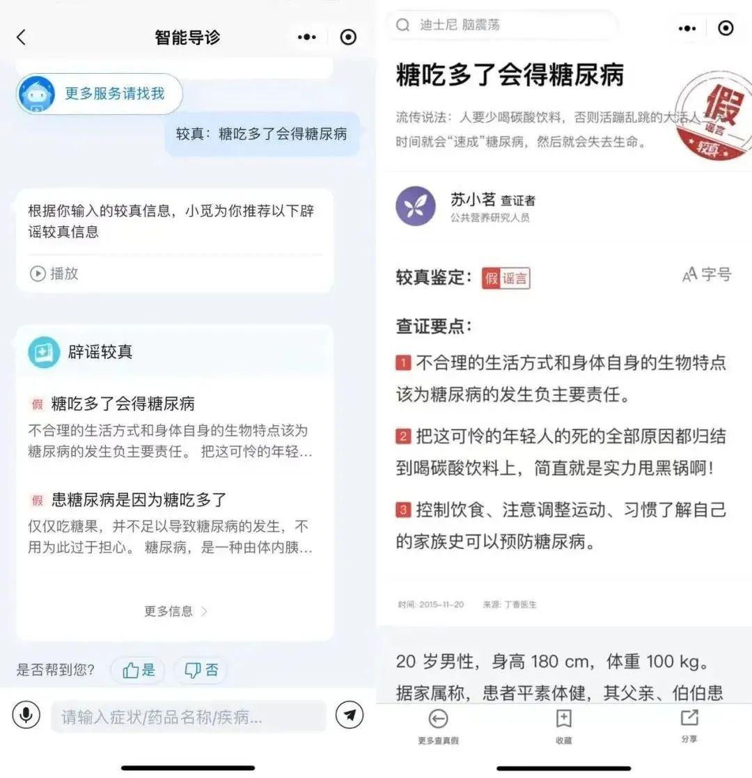 朋友圈瘋傳的“食物相剋表”是真是假?偏方治大病能不能信?內置權威醫療知識庫,按格式輸入健康關鍵詞,1秒識別謠言,給您科學靠譜的解答,從此不做“養生冤大頭”!