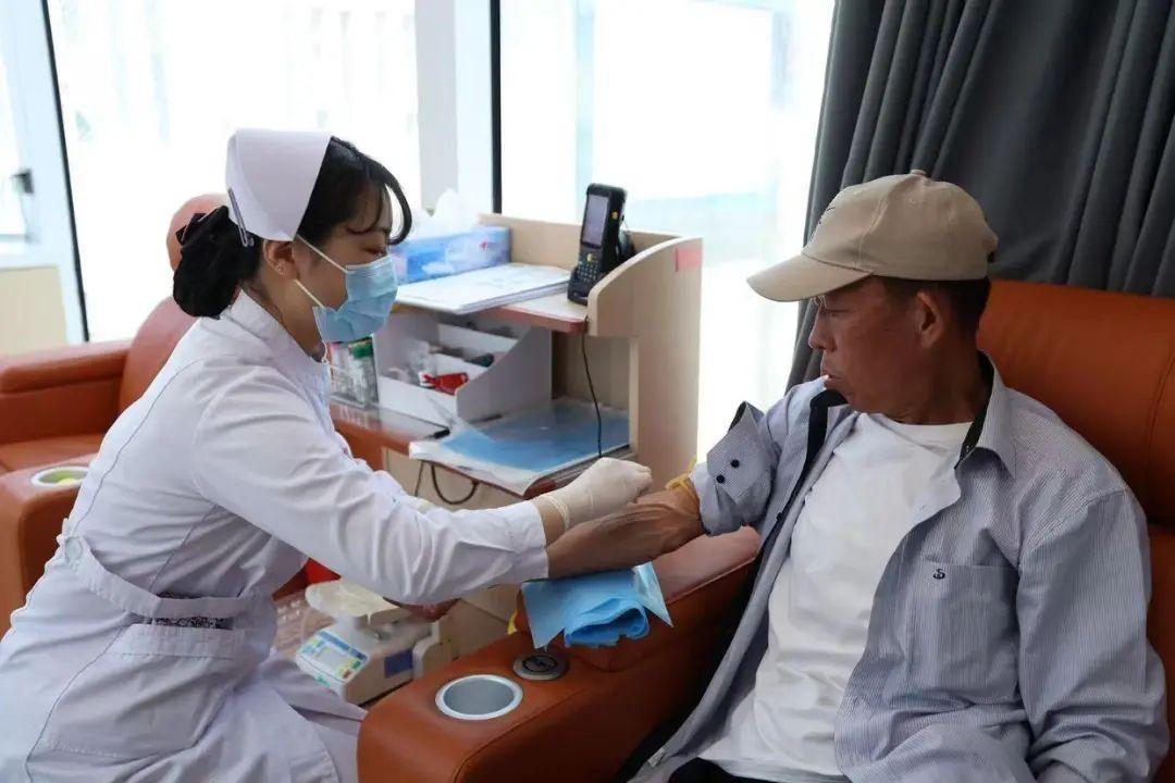 6月11日9時30分,57歲的市民郭先生來到北京站獻血點。他是這裏的“常客”,每年在世界獻血者日(6月14日)前後,他都會到此獻400毫升血液。這一習慣,他堅持了近20年,累計獻血53次。“我年輕時在北京站附近工作,看到獻血車做宣傳,說獻血能救人,我便開始獻血,一直堅持到現在。多年來,我始終保持健康的生活方式,從未出現過血液不合格的情況。獻血不僅幫助他人,也讓我收穫健康。”郭先生說。