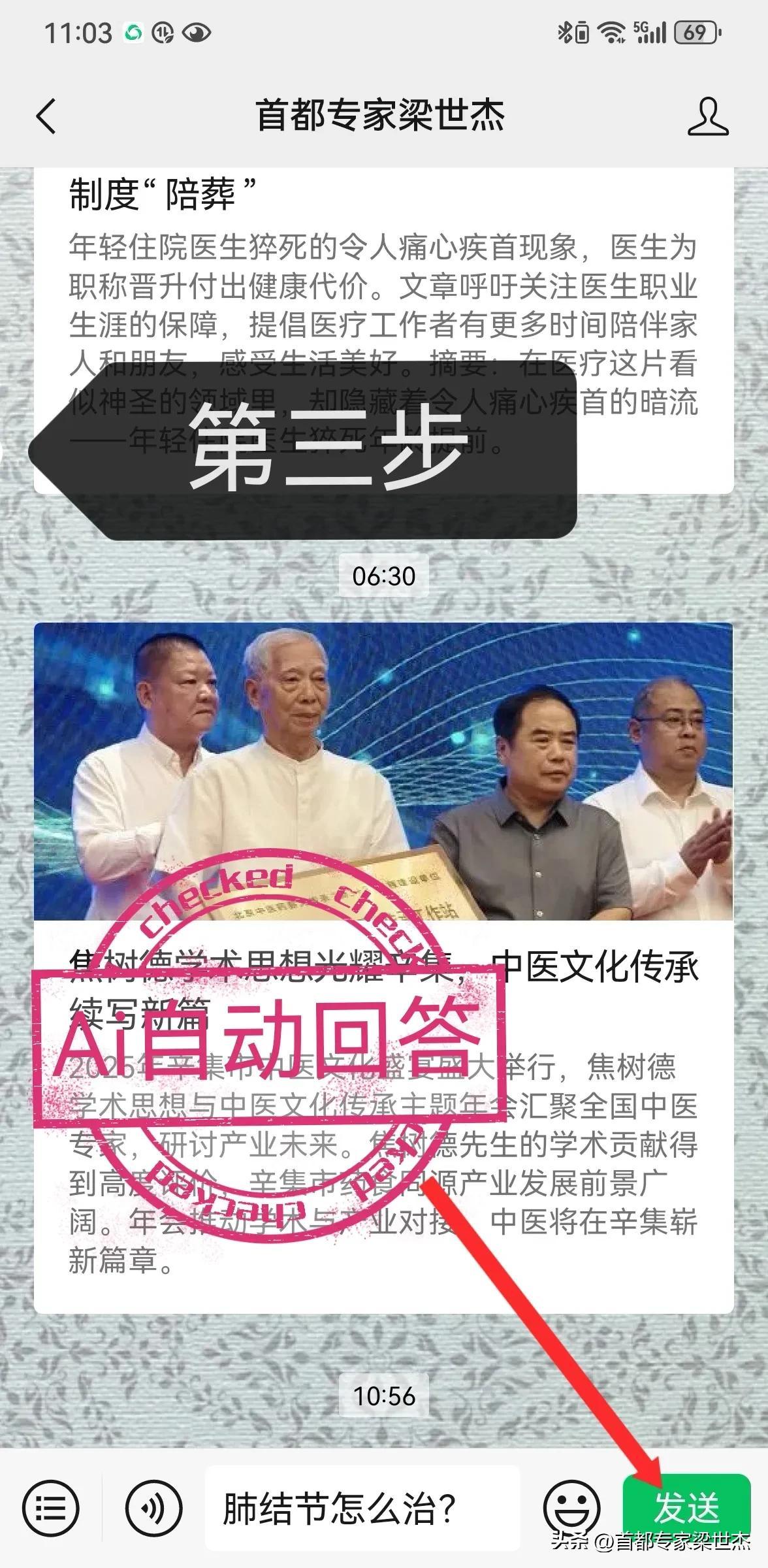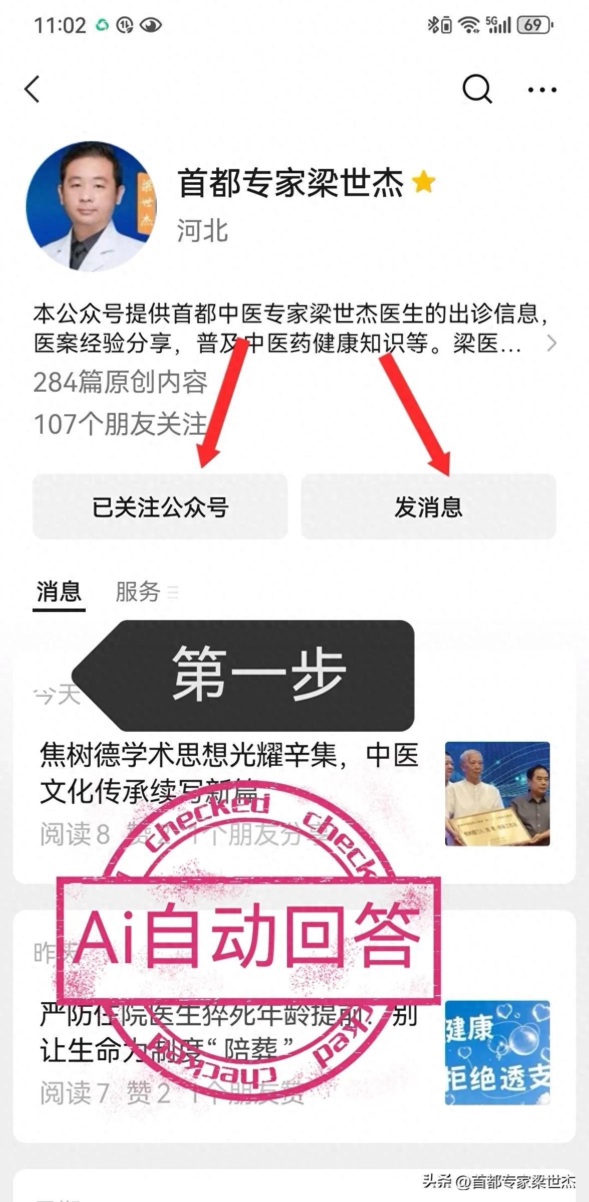 公衆號“首都專家梁世傑”已開通ai自動回答功能,歡迎大家體驗