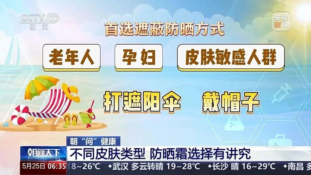 老年人、孕婦和皮膚敏感人羣首選遮蔽防曬方式,如打遮陽傘或戴帽子,其次可選擇刺激性較小的防曬霜。