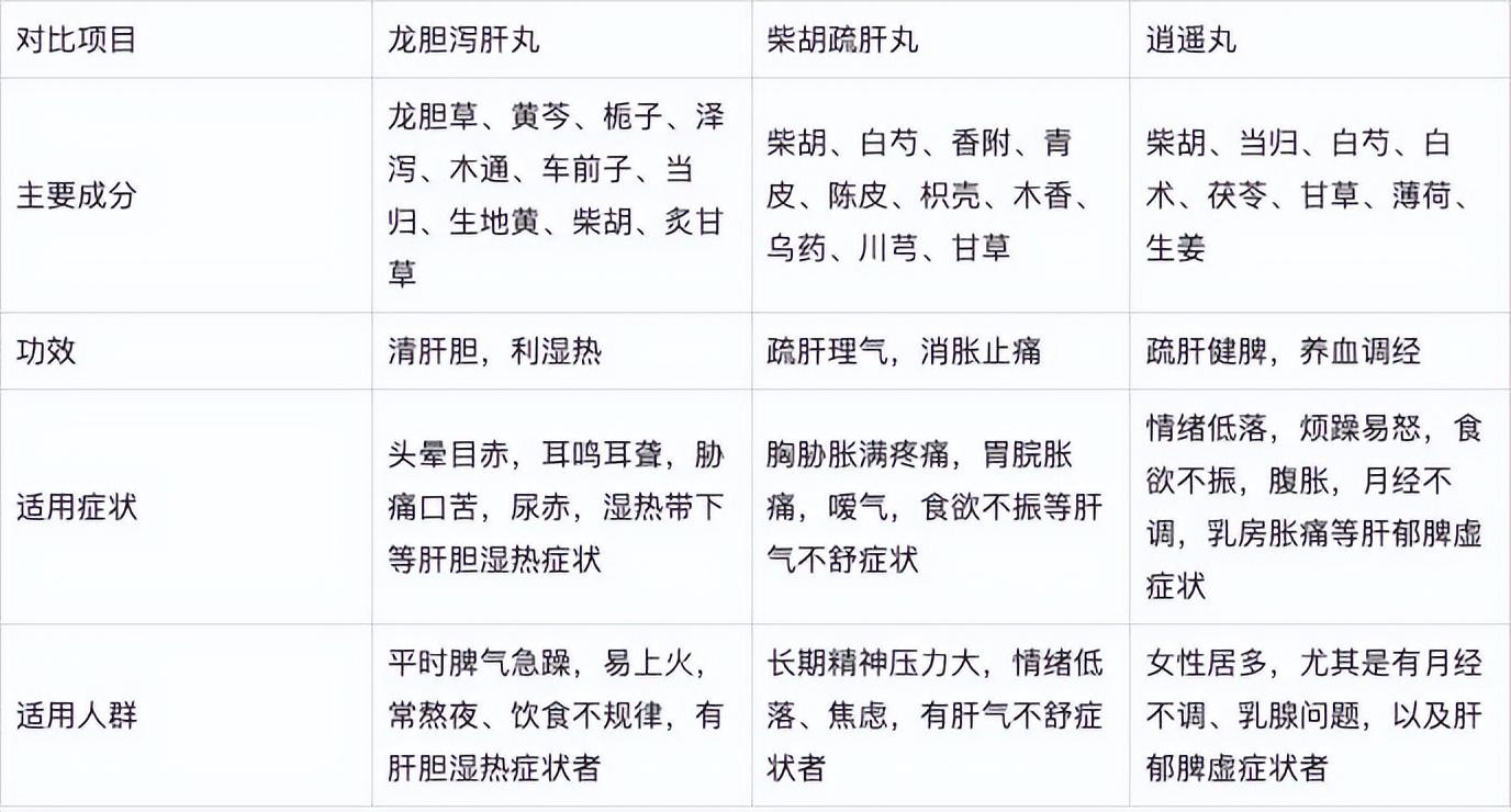 龍膽瀉肝丸,柴胡疏肝丸,逍遙丸,有什麼區別?中醫給你講清楚