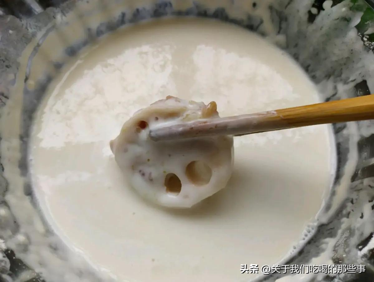 炸藕夾時,調麪糊記得不能只用麪粉,也不能只用澱粉,而且兩種都要用,再添加少許泡打粉,用啤酒調稀,最後加一勺油,就可以調出脆皮糊了。