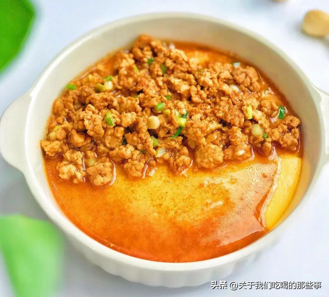若是喜歡喫肉末,可以將炒好的肉末,最好有些湯汁,一同澆在蒸好的雞蛋羹上,這樣做出來有肉有蛋,味道好營養高,喫多少次都不膩。