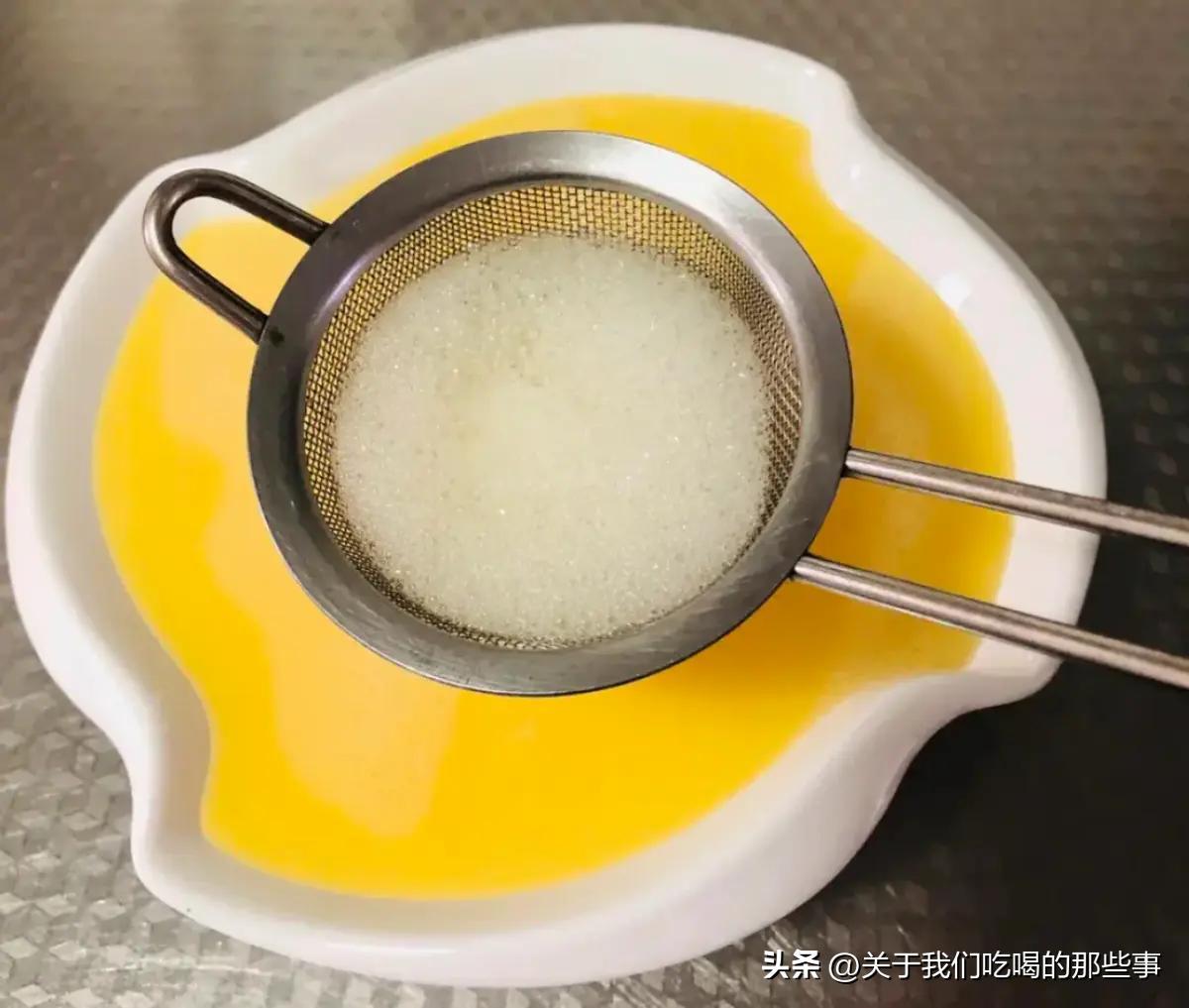 二是加了水後要過濾一下,這樣做了纔會蒸出內部非常細膩的雞蛋羹。實在不想這麼麻煩,也要簡單地把蛋液水錶面的泡沫撇乾淨,切不可帶着泡沫直接蒸。