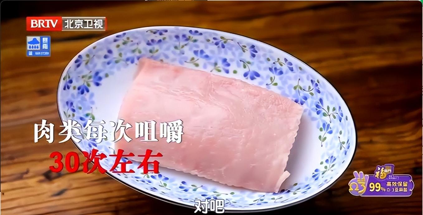 主食每喫一口咀嚼10次左右,肉類每一口咀嚼30次左右。