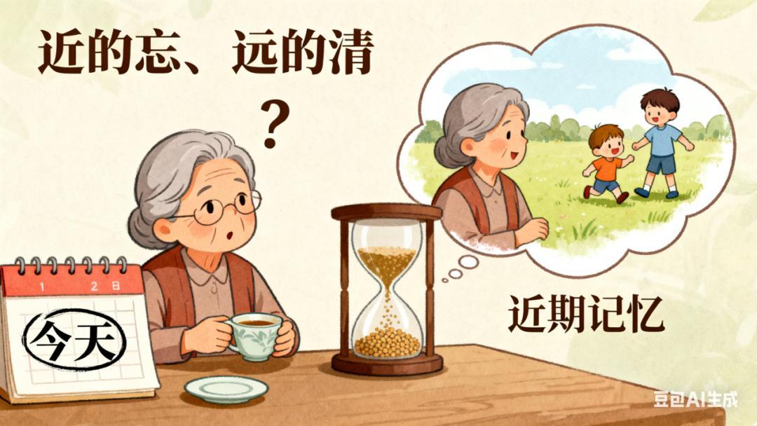 第一個要注意的就是“記憶減”,主要特點是新事記不住,老事忘不了。這也是認知障礙早期最典型的信號——記憶減退,剛發生的事情轉頭就忘,很久以前的事卻記得清清楚楚。近期記憶像“沙漏”,老事清楚新事漏。這是因爲大腦負責“近期記憶”的區域先受影響,而“遠期記憶”的區域尚未波及。要是家裏老人總問“我剛纔說要幹啥來着?”,但說起年輕時的工作卻滔滔不絕,可得留個心眼了。